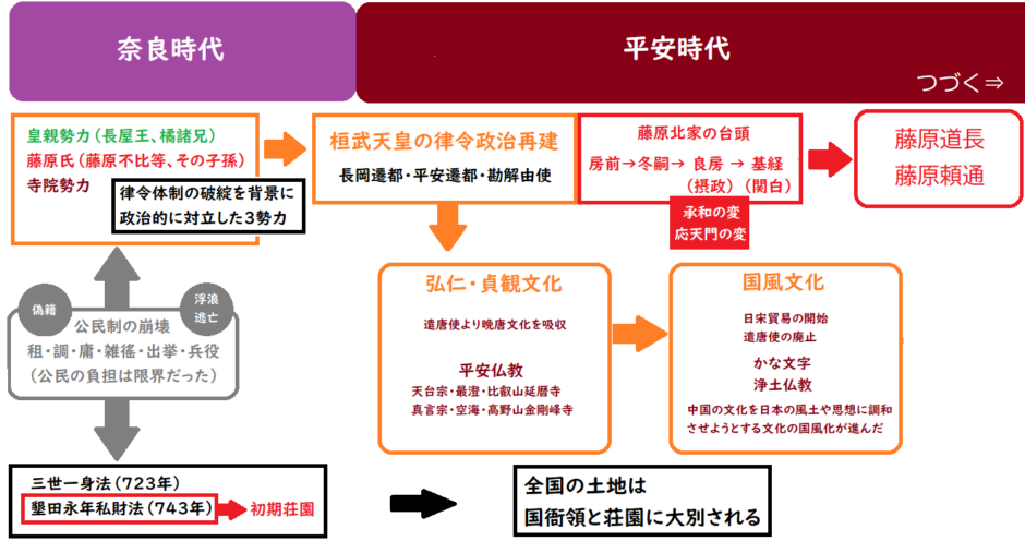 9世紀 金持ちの百姓(富豪百姓、富豪の輩)が私出挙(出挙とは勧農、浮浪者など農民にすること、公的な公出挙と私的な私出挙がある)を行う一方で、都の貴族らに土地を寄進(きしん)する動きをみせた。